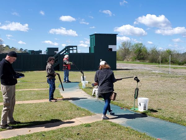 L-R Janie (Alabama State Handicap Trap Shooter, Ladies' Champion), Leila (never competed) and Becky (Junior All-American and All-American Skeet Shooter). Read more about these wonderful and talented ladies on our History Page.
